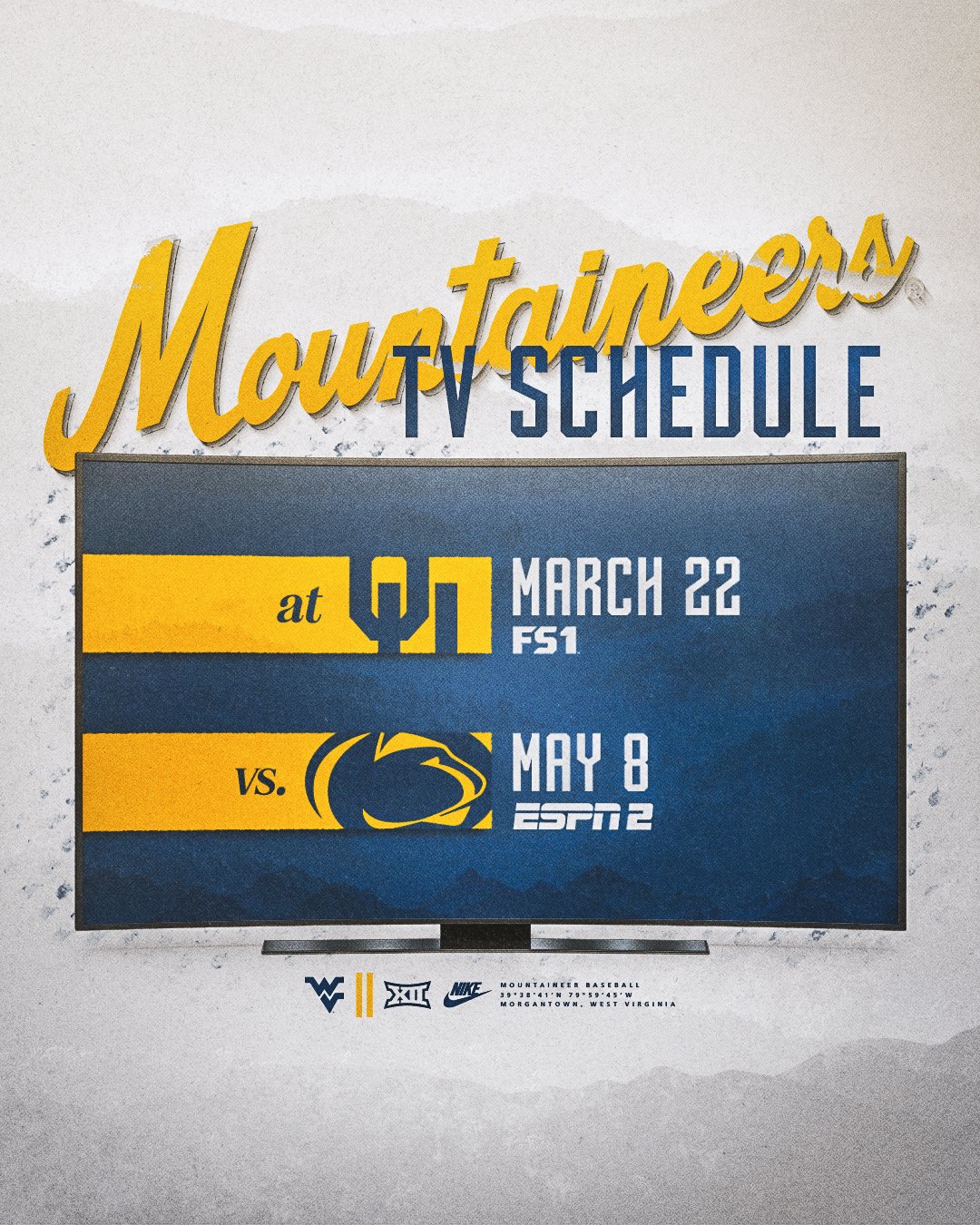 Source : wvusports.comWVU Baseball on X: “Catch us on ๐๐๐๐๐๐๐๐ TV this season